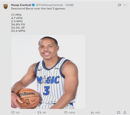 北京时间11月7日,NBA媒体Hoop Central晒出一组数据:最近三场比赛,魔术后卫贝恩场均7.7分2.3篮板4.7助攻,投篮命中率仅有34.8%,三分命中率33.3%。目前魔术3胜5负,仅排名东部第11位,战绩跟黄蜂持平。