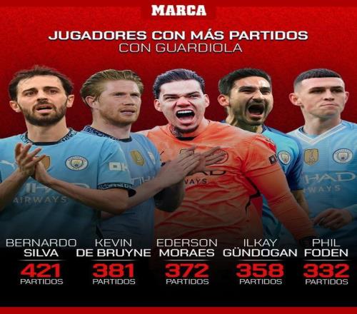 北京时间11月10日,曼城将在主场迎战英超第11轮的对手利物浦。届时瓜迪奥拉将达成执教1000场比赛的里程碑。在过去的999场比赛,瓜迪奥拉麾下球员中,B席的出场次数最多,达421场。德布劳内在瓜帅麾下出场第二多,共381场。